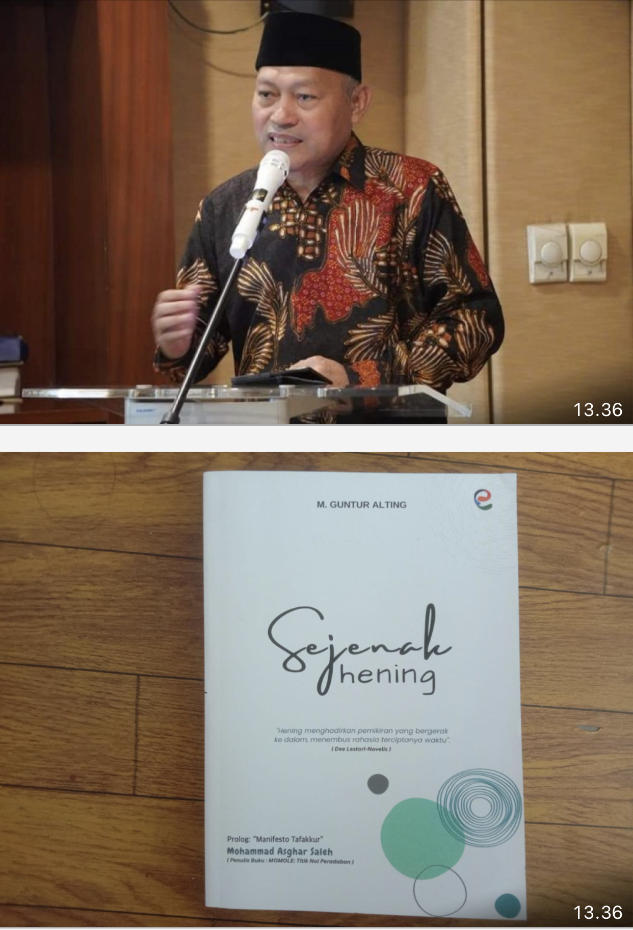 SAYA menyambut baik terbitnya buku “Sejenak Hening” yang ditulis oleh Dr.M.Guntur Alting, M.Si. Dosen muda Universitas Muhammadiyah Jakarta (UMJ) yang sudah sama kita kenal.