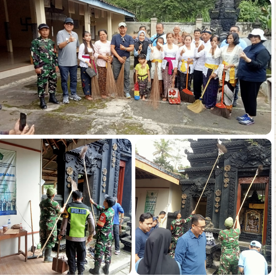 Danramil 05/Ampel Kodim 0724/Boyolali Kapten Arh Eko Yanu P bersama jajaran Forkopimcam Ampel turut mendampingi Wakil Bupati Boyolali, Ibu Dwi Fajar Nirvana, dalam kegiatan kerja bakti membersihkan area pura. Kegiatan tersebut melibatkan berbagai elemen masyarakat, mulai dari TNI, Polri, Karang Taruna, relawan, hingga warga setempat.