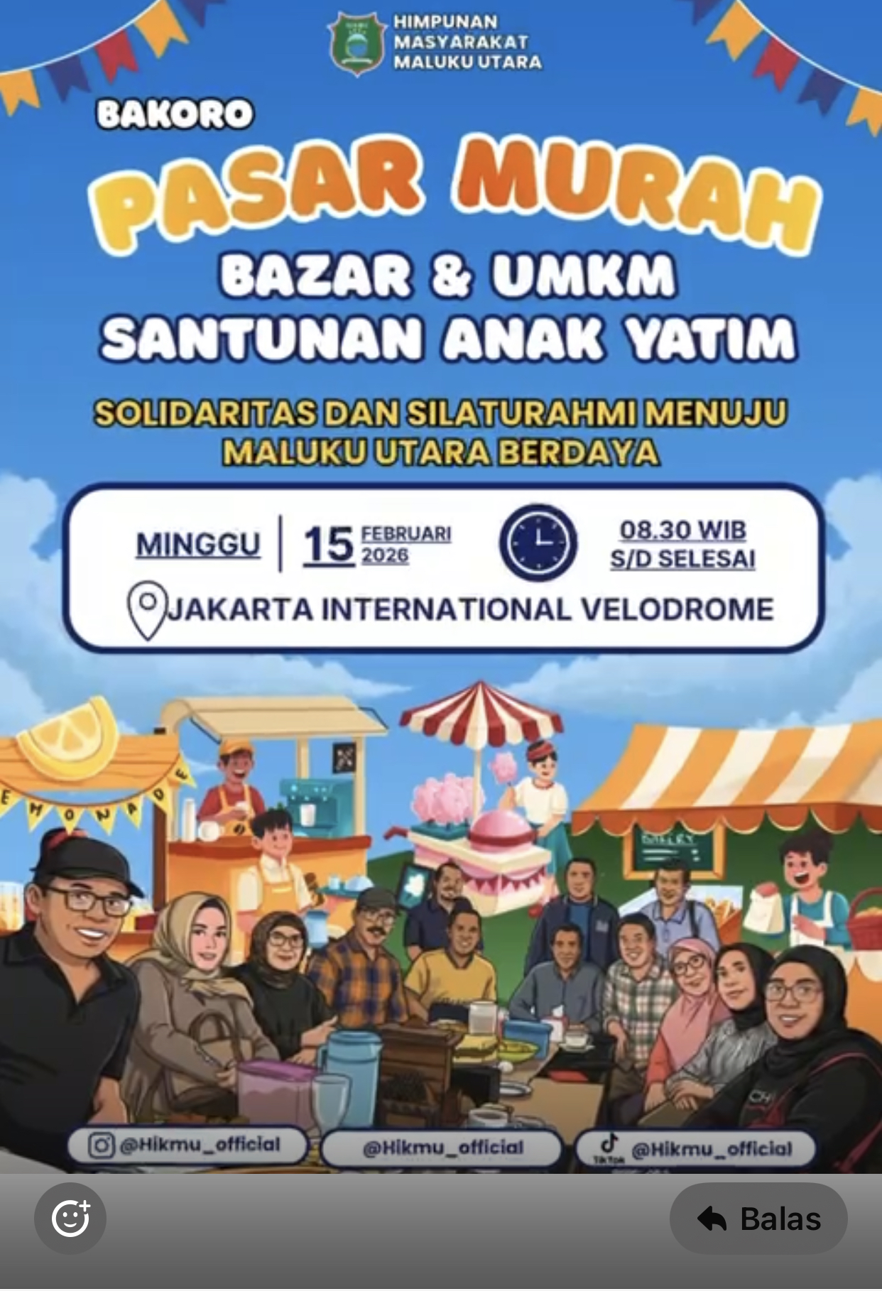 Jakarta – Himpunan Keluarga Maluku Utara (HIKMU) akan menggelar kegiatan bertajuk “BAKORO PASAR MURAH, BAZAR & UMKM, SANTUNAN ANAK YATIM” pada 15 Februari 2026 mendatang.