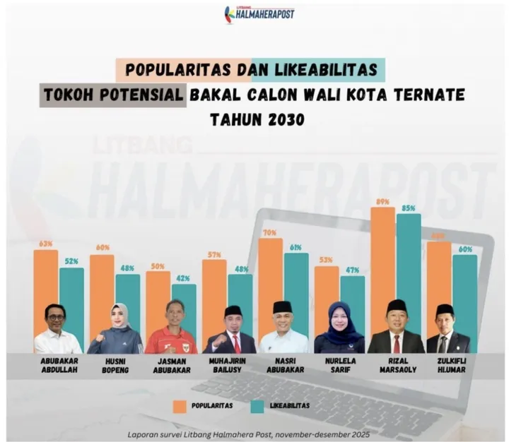 Ternate – Dalam hasil survei terbaru yang dirilis oleh Litbang HalmaheraPost, nama Rizal Marsaoly, Sekretaris Daerah Kota Ternate, muncul sebagai kandidat favorit dengan posisi terdepan dalam perebutan kursi wali kota periode 2026! Survei yang dilakukan dari 29 Januari hingga 7 Februari 2026 ini menunjukkan keunggulan yang mencengangkan, menempatkan Rizal sebagai calon yang paling banyak diincar masyarakat.