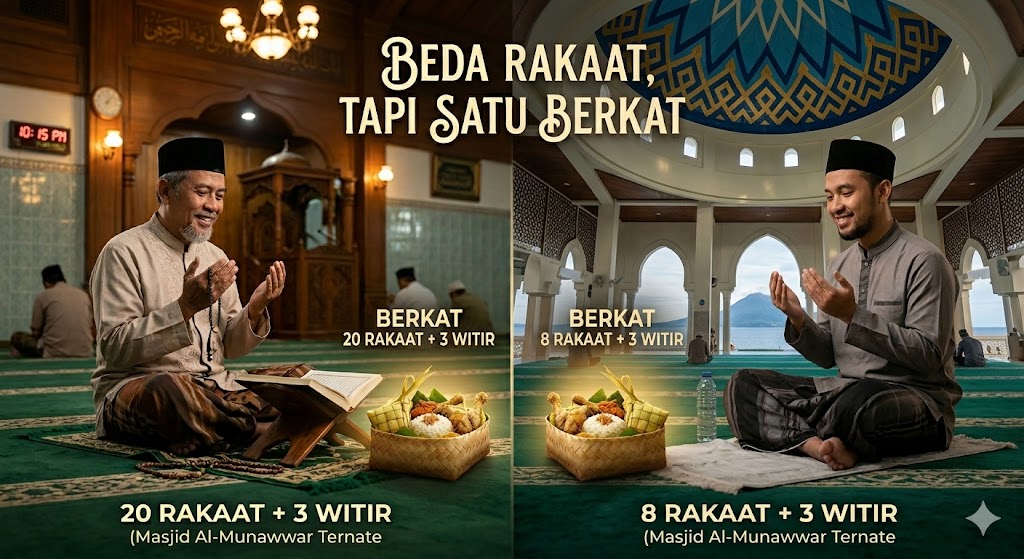 Namun, di balik kekhusyuan syiar di masjid-masjid Ternate, Tidore, hingga Halmahera.Terdapat sebuah fenomena “sosioreligius” yang menarik untuk ditelaah: pergeseran perlahan namun pasti dari format salat Tarawih 23 rakaat menuju 11 rakaat.