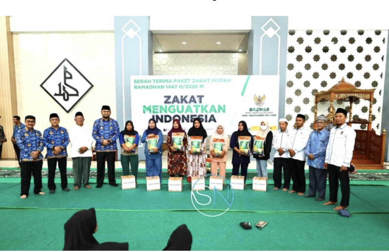 LABUHA – Pemerintah Kabupaten Halmahera Selatan bersama Badan Amil Zakat Nasional (Baznas) terus memperkuat kepedulian sosial di bulan suci Ramadan. Bupati Halmahera Selatan, Hasan Ali Bassam Kasuba, secara simbolis menyerahkan paket zakat fitrah dan paket Lebaran kepada masyarakat yang membutuhkan.