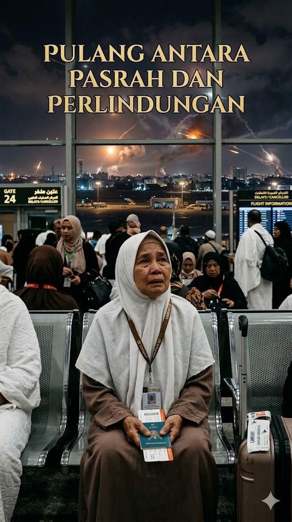 “Pak, apa anak-anak di rumah sudah tahu kalau pesawat kita batal?” bisik sang istri, suaranya bergetar menahan tangis.