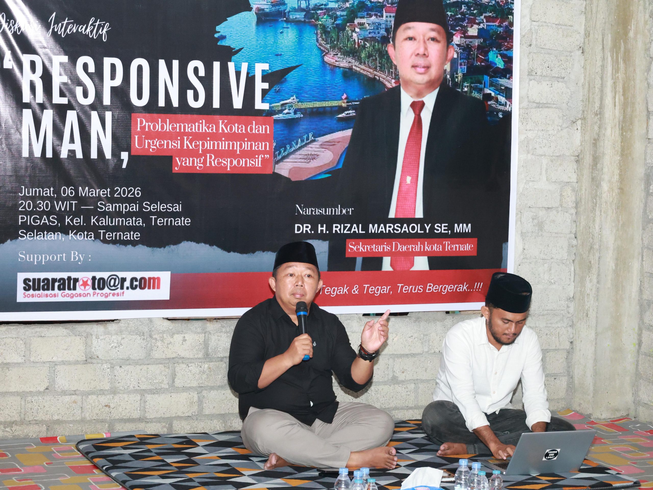 Ternate, 6 Maret 2026 – Dalam upaya mendorong pembangunan berkelanjutan dan memenuhi aspirasi masyarakat, Sekretaris Daerah Kota Ternate, Rizal Marsaoly, menggarisbawahi pentingnya kepemimpinan yang responsif dalam menghadapi berbagai permasalahan kota. Pesan tersebut disampaikan saat menjadi narasumber dalam diskusi bertajuk “Responsive Man: Problematika Kota dan Urgensi Kepemimpinan yang Responsif”, yang digelar Solidaritas Aksi Mahasiswa untuk Rakyat Indonesia (Samurai) Maluku Utara di Pusat Interaksi Ide dan Gagasan (Pigas), Kelurahan Kalumata, malam ini.